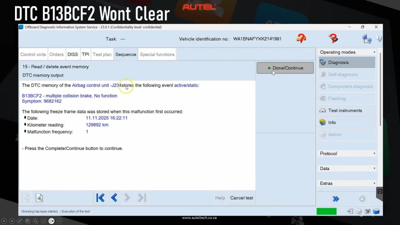 - Attempt Online Coding via Autel to see if the fault clears.
