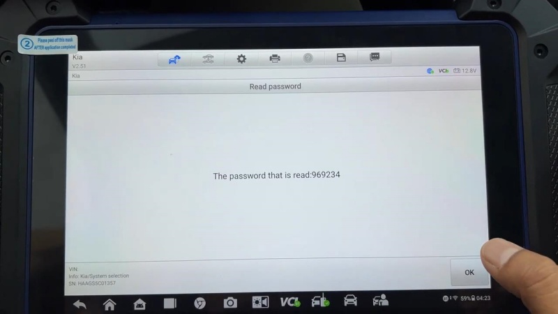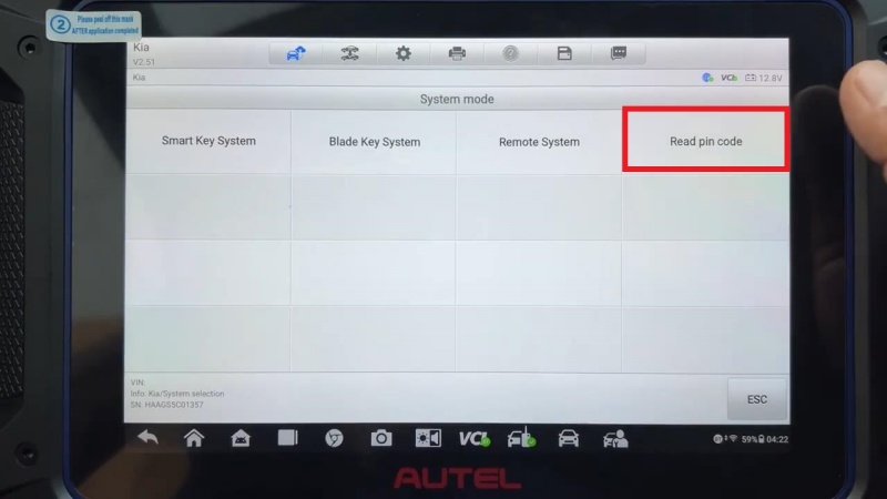 Immo >> Kia >> System selection >> Read pin code >> Read pin code(8A Smart card)