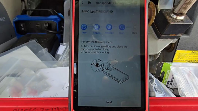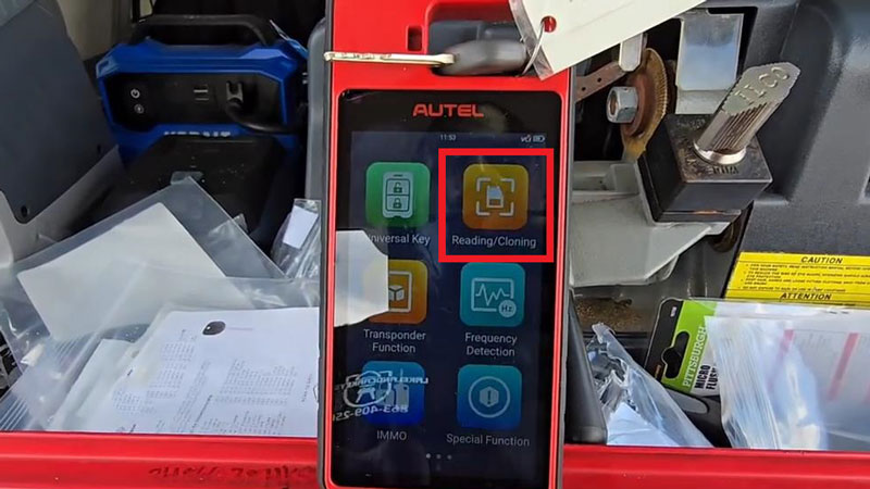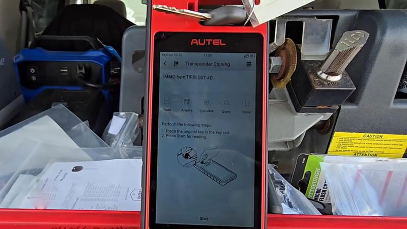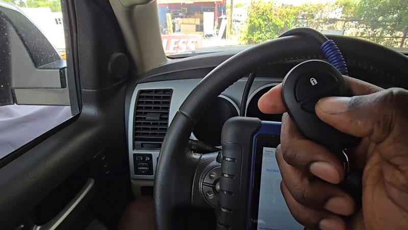 Today we’re going to work on this 2008 Toyota Tundra and make a new key for it. What I want to do is to test the new Autel AT100 Universal Chip with Autel KM100 Key Programmer. So I’ll need to clone the original key to the universal transponder first. Let’s go ahead.