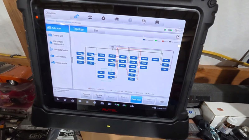 - High-Speed Topology: It mapped out all modules instantly, showing that the “battery failure” was actually just a bad 12V low-voltage battery causing havoc across the system.
