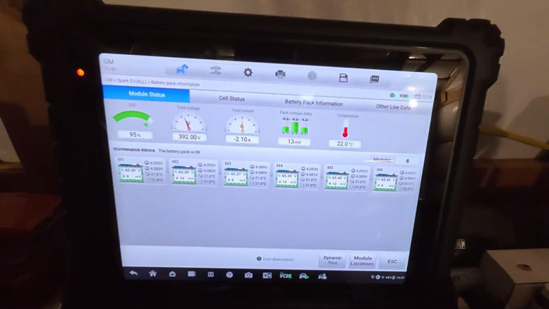 - Cell-Level Analysis: The tool allows you to see every single cell in each module (96 cells total for this car) to identify specific weak points.