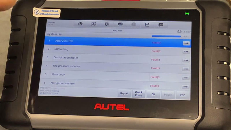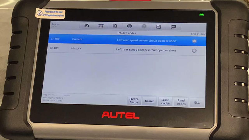 The Tacoma had persistent ABS lights. Using the Auto Scan feature, the MK808S communicated with the truck’s CAN bus to identify the culprit.