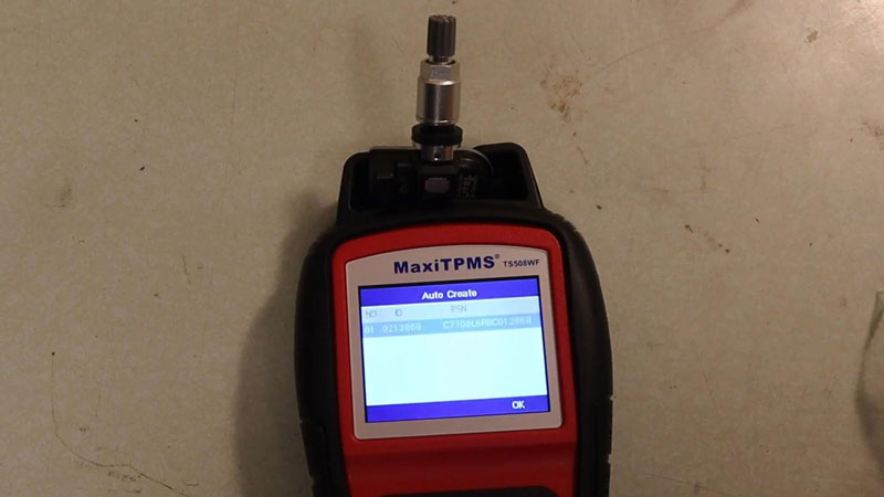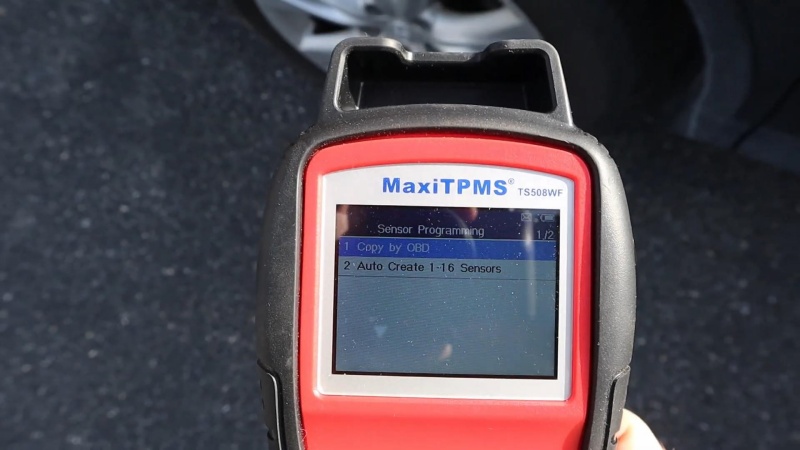 After reinstalling the wheel, I used the “Copy by OBD” function. The tool read the four sensor IDs stored in the car. I selected the ID corresponding to the old front left sensor and copied it to the new sensor.