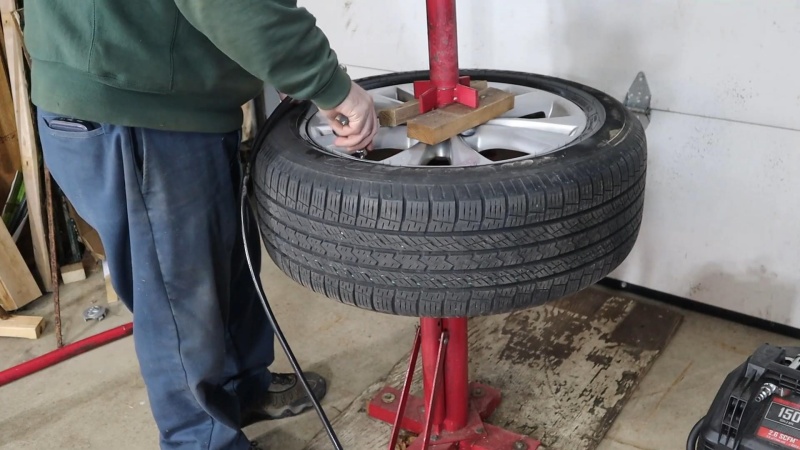 After programming, I physically replaced the sensor. I broke the tire bead, swapped out the old sensor for the newly programmed one, re-seated the tire, and inflated it.