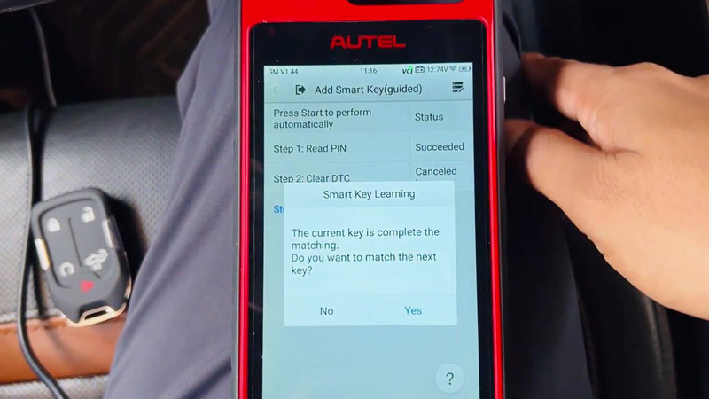 - Once the screen indicates the current key matching is complete, select No if you do not have additional keys to program.