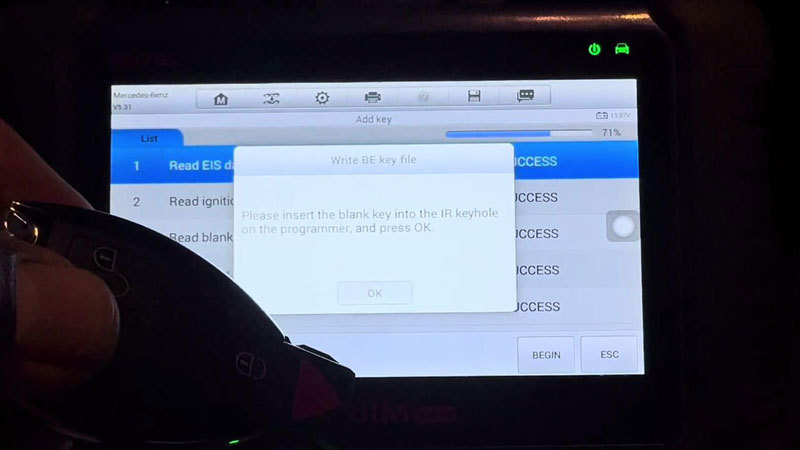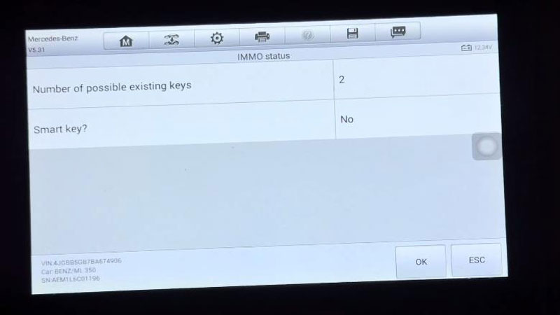 The IM508S will automatically detect the W164 chassis. The system will then check the frequency of both your original key and the new blank key to ensure compatibility.