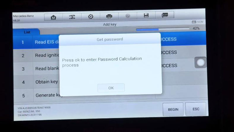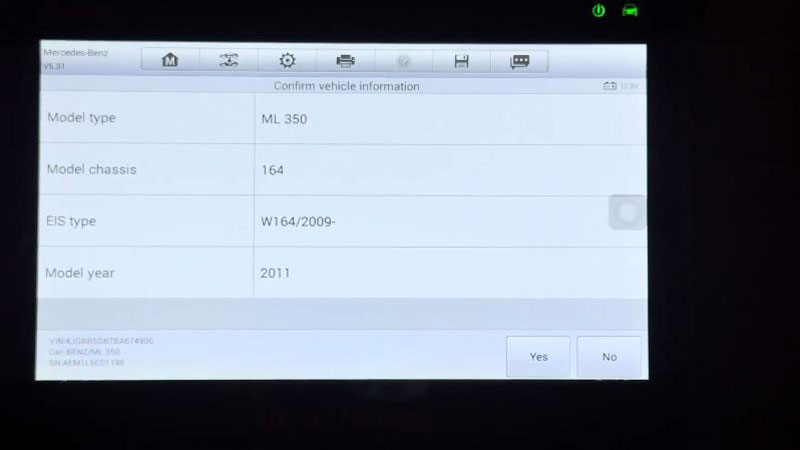 The IM508S will automatically detect the W164 chassis. The system will then check the frequency of both your original key and the new blank key to ensure compatibility.