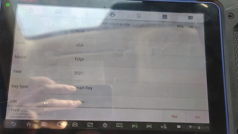 Select Ford > Automatic Selection to read the VIN > Ford > Edge > 2021- > Smart Key > IMMO Status Scan > Quick Erase DTC to ensure the system is clear.