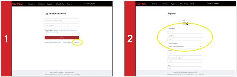 - Visit https://pro.autel.com, click Register to create your Autel ID.