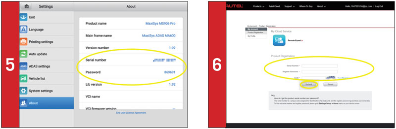 - Enter your Autel MK906S Pro2-TS tablet serial number and password.