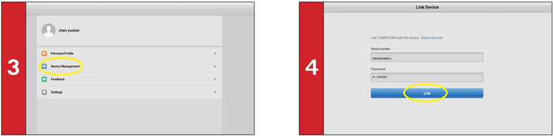 *The serial number and password of the device will automatically appear on the Link Device screen.
