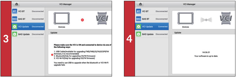 Connect the VCI to a power source to ensure updates are installed correctly.